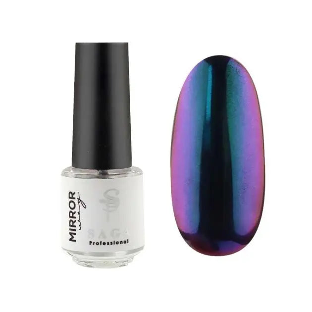Mirror way Saga drops are a unique fluid designed to create bright, saturated designs. The drops are convenient to use, easy to apply with chaotic movements and give the finished manicure a zest. Liquid rubbing is applied with a special sponge. In the air drops instantly turn into powder and are applied to the nail plate with an auxiliary tool. The application of rubbing is not difficult, so the drops are suitable for beginners and professionals. The design is not subject to deformation, does not chip or crack.