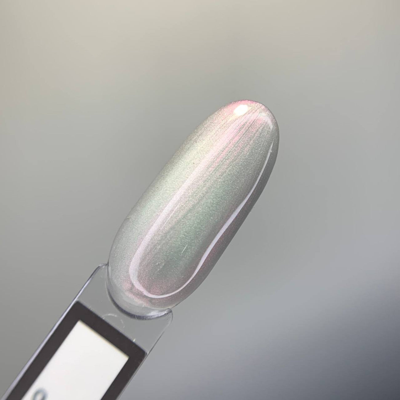 Gel polish cat's eye with a delicate pearl glare on a mother-of-pearl base. To create incredible shimmers, a special magnet is required.