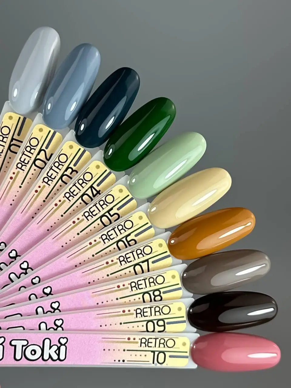 Retro by Toki Toki is an autumn inspiration for those who are tired of classic red and wine colors. Various shades of gray, green, and brown Retro gel polishes will definitely add freshness to your autumn manicure. Toki Toki Retro is definitely a must-have in the fall and winter.
